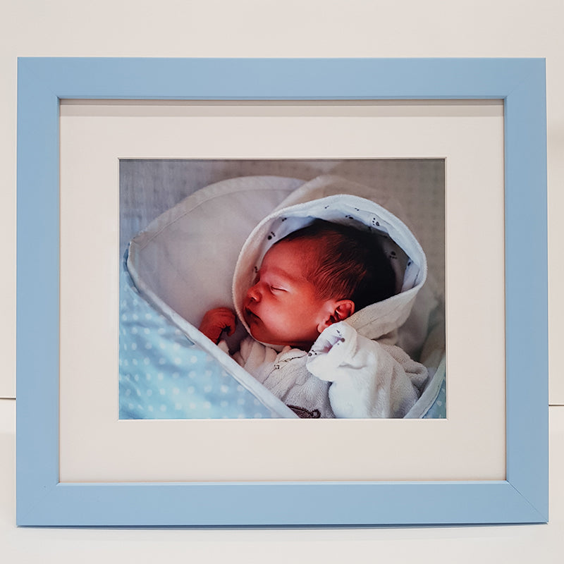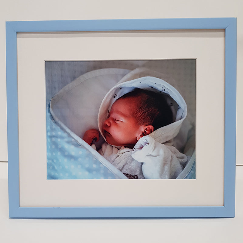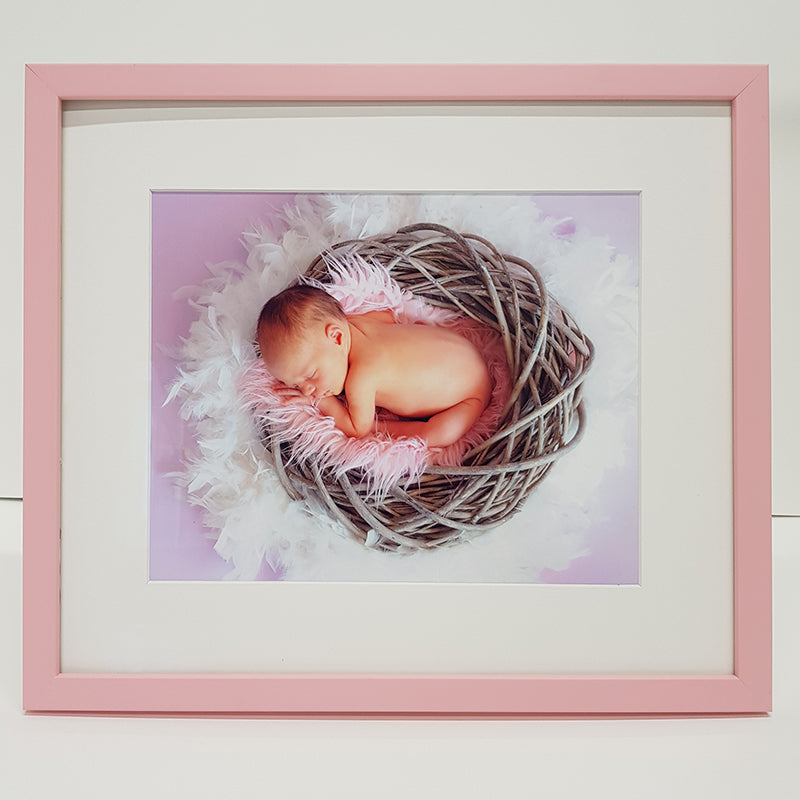 An 8 x 10 inch print on Epson Luster paper and framed in a Blue or Pink frame.