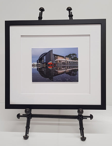 This is framed in a black 20mm x 20mm frame with a 50mm mat border. There is a 50mm gap between the image and the mat board. The image and mat board are raised giving the floating effect.